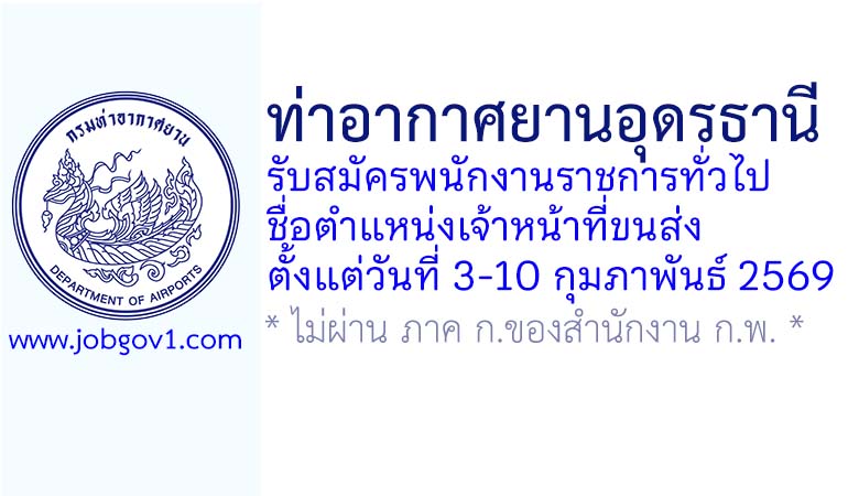 ท่าอากาศยานอุดรธานี รับสมัครพนักงานราชการทั่วไป ตำแหน่งเจ้าหน้าที่ขนส่ง ตั้งแต่วันที่ 3-10 กุมภาพันธ์ 2569