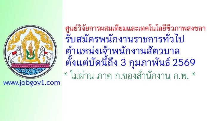 ศูนย์วิจัยการผสมเทียมและเทคโนโลยีชีวภาพสงขลา รับสมัครพนักงานราชการทั่วไป ตำแหน่งเจ้าพนักงานสัตวบาล
