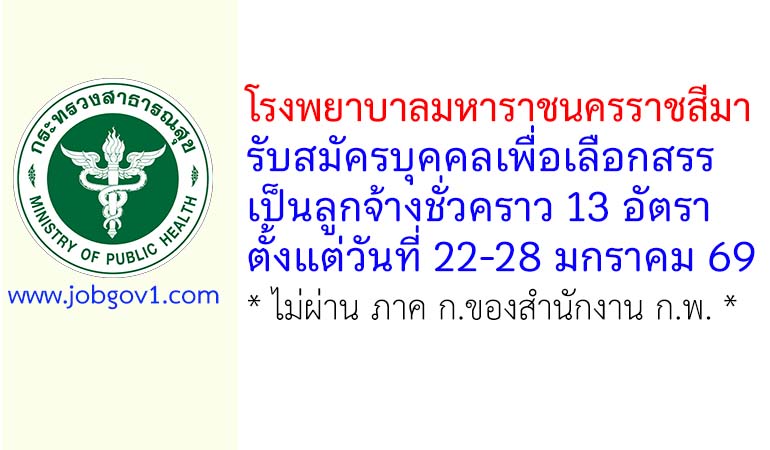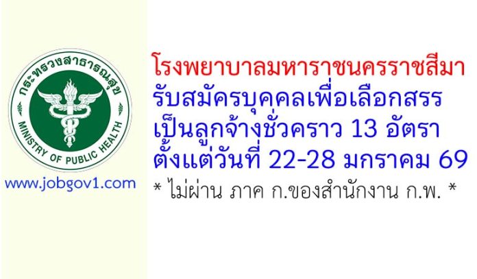 โรงพยาบาลมหาราชนครราชสีมา รับสมัครบุคคลเพื่อเลือกสรรเป็นลูกจ้างชั่วคราว 13 อัตรา ตั้งแต่วันที่ 22-28 มกราคม 2569