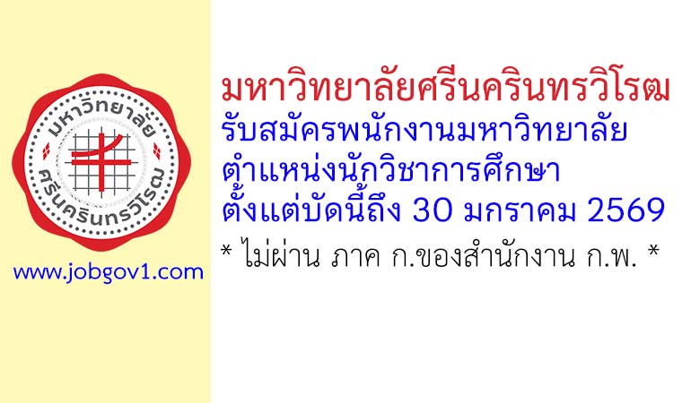 มหาวิทยาลัยศรีนครินทรวิโรฒ รับสมัครพนักงานมหาวิทยาลัย ตำแหน่งนักวิชาการศึกษา ตั้งแต่บัดนี้ถึง 30 มกราคม 2569