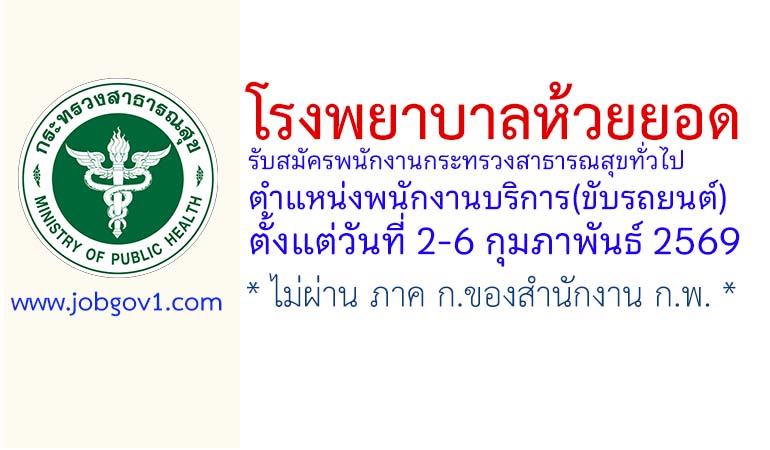 โรงพยาบาลห้วยยอด รับสมัครพนักงานกระทรวงสาธารณสุขทั่วไป ตำแหน่งพนักงานบริการ(ขับรถยนต์) ตั้งแต่วันที่ 2-6 กุมภาพันธ์ 2569