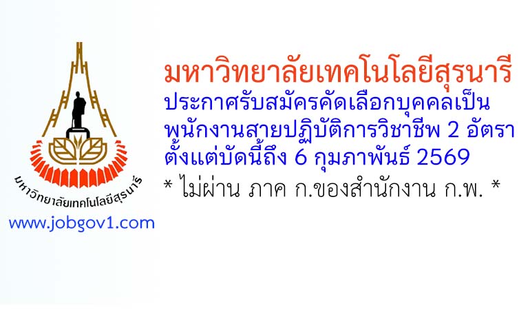 ประกาศมหาวิทยาลัยเทคโนโลยีสุรนารี เรื่อง รับสมัครคัดเลือกบุคคลเพื่อบรรจุและแต่งตั้งเป็นพนักงานสายปฏิบัติการวิชาชีพและบริหารทั่วไป ครั้งที่ 1/2569 (เพิ่มเติม)