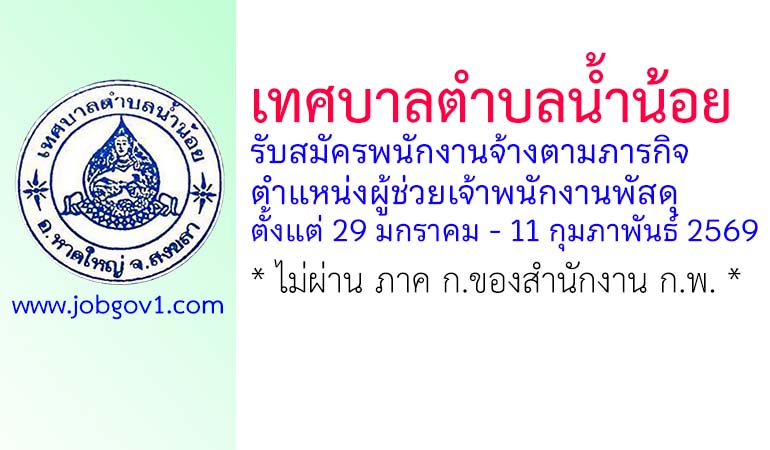 เทศบาลตำบลน้ำน้อย รับสมัครพนักงานจ้างตามภารกิจ ตำแหน่งผู้ช่วยเจ้าพนักงานพัสดุ ตั้งแต่ 29 มกราคม – 11 กุมภาพันธ์ 2569