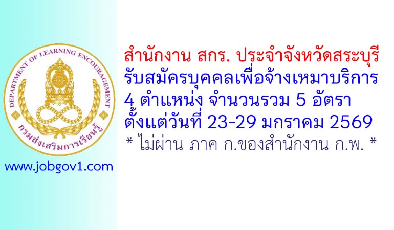 ประกาศ สำนักงานส่งเสริมการเรียนรู้ประจำจังหวัดสระบุรี เรื่อง รับสมัครคัดเลือกบุคคลเพื่อจ้างเหมาบริการ