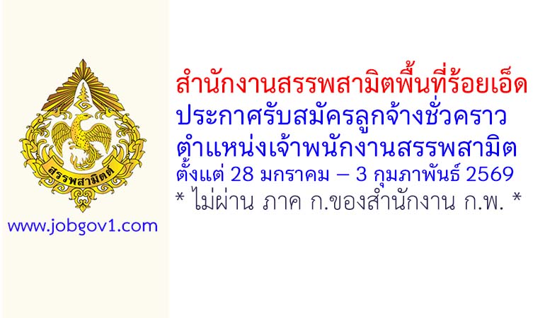 สำนักงานสรรพสามิตพื้นที่ร้อยเอ็ด รับสมัครลูกจ้างชั่วคราว ตำแหน่งเจ้าพนักงานสรรพสามิต ตั้งแต่ 28 มกราคม – 3 กุมภาพันธ์ 2569