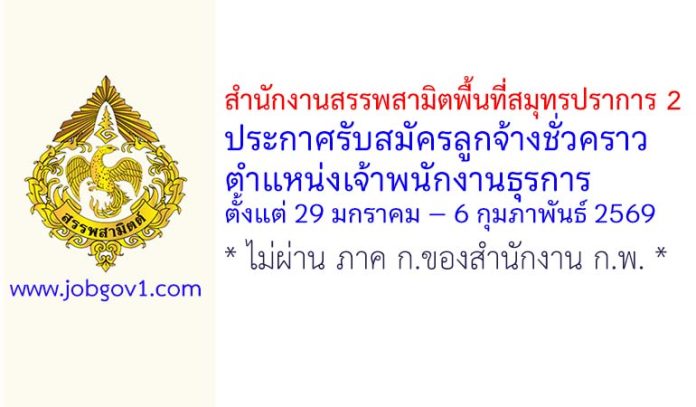 สำนักงานสรรพสามิตพื้นที่สมุทรปราการ 2 รับสมัครลูกจ้างชั่วคราว ตำแหน่งเจ้าพนักงานธุรการ ตั้งแต่ 29 มกราคม – 6 กุมภาพันธ์ 2569