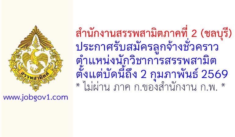 สำนักงานสรรพสามิตภาคที่ 2 (ชลบุรี) รับสมัครลูกจ้างชั่วคราว ตำแหน่งนักวิชาการสรรพสามิต ตั้งแต่บัดนี้ถึง 2 กุมภาพันธ์ 2569