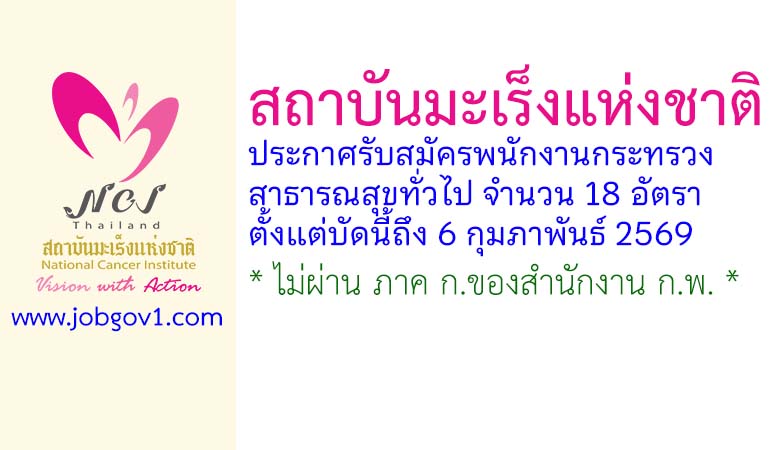 สถาบันมะเร็งแห่งชาติ รับสมัครบุคคลเพื่อเลือกสรรเป็นพนักงานกระทรวงสาธารณสุขทั่วไป 18 อัตรา ตั้งแต่บัดนี้ถึง 6 กุมภาพันธ์ 2569