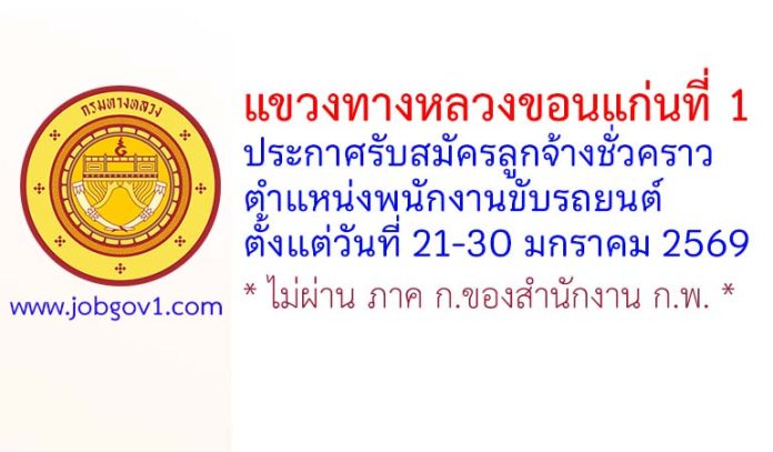 แขวงทางหลวงขอนแก่นที่ 1 รับสมัครลูกจ้างชั่วคราว ตำแหน่งพนักงานขับรถยนต์ ตั้งแต่วันที่ 21-30 มกราคม 2569
