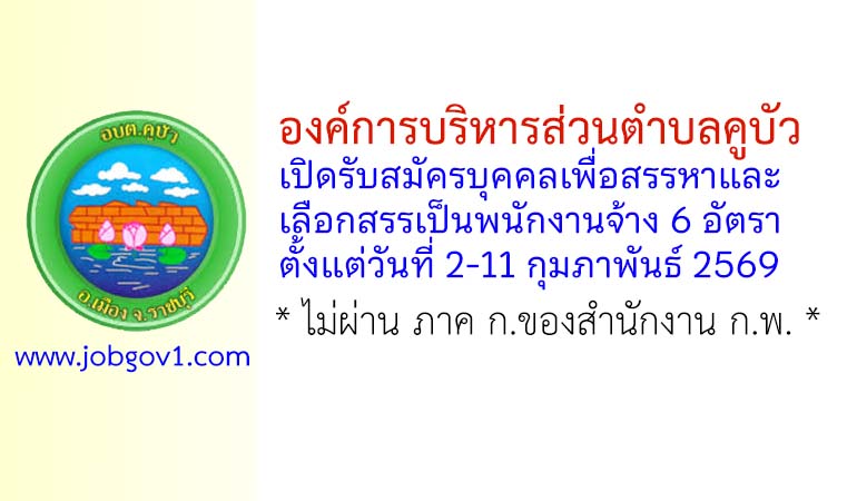 องค์การบริหารส่วนตำบลคูบัว รับสมัครบุคคลเพื่อสรรหาและเลือกสรรเป็นพนักงานจ้าง 6 อัตรา ตั้งแต่วันที่ 2-11 กุมภาพันธ์ 2569