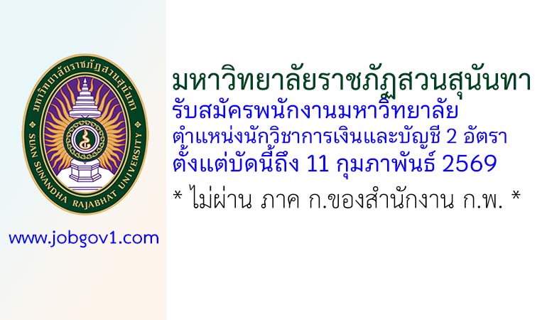 มหาวิทยาลัยราชภัฏสวนสุนันทา รับสมัครพนักงานมหาวิทยาลัย ตำแหน่งนักวิชาการเงินและบัญชี 2 อัตรา