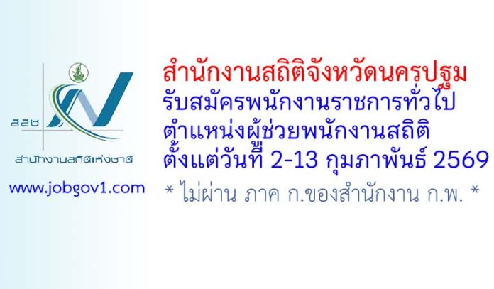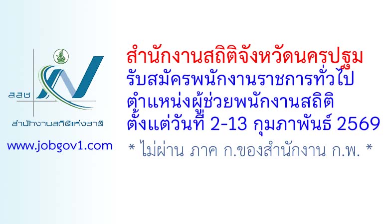 สำนักงานสถิติจังหวัดนครปฐม รับสมัครพนักงานราชการทั่วไป ตำแหน่งผู้ช่วยพนักงานสถิติ ตั้งแต่วันที่ 2-13 กุมภาพันธ์ 2569