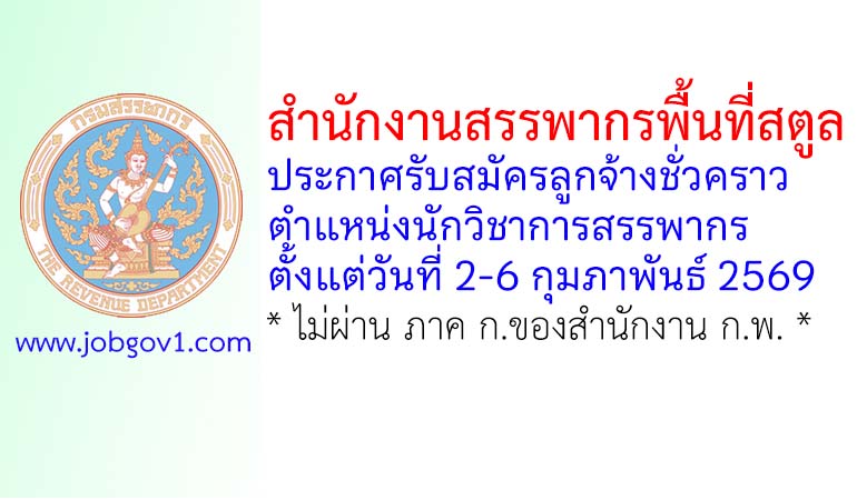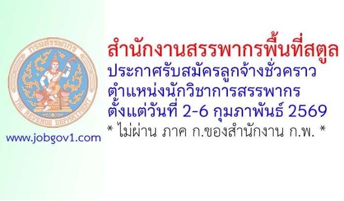 สำนักงานสรรพากรพื้นที่สตูล รับสมัครลูกจ้างชั่วคราว ตำแหน่งนักวิชาการสรรพากร ตั้งแต่วันที่ 2-6 กุมภาพันธ์ 2569