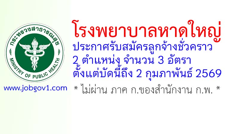 โรงพยาบาลหาดใหญ่ รับสมัครลูกจ้างชั่วคราว 3 อัตรา ตั้งแต่บัดนี้ถึง 2 กุมภาพันธ์ 2569