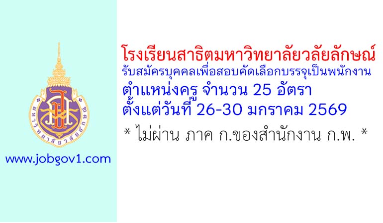 โรงเรียนสาธิตมหาวิทยาลัยวลัยลักษณ์ รับสมัครบุคคลเพื่อสอบคัดเลือกบรรจุเป็นพนักงาน ตำแหน่งครู 25 อัตรา ตั้งแต่วันที่ 26-30 มกราคม 2569