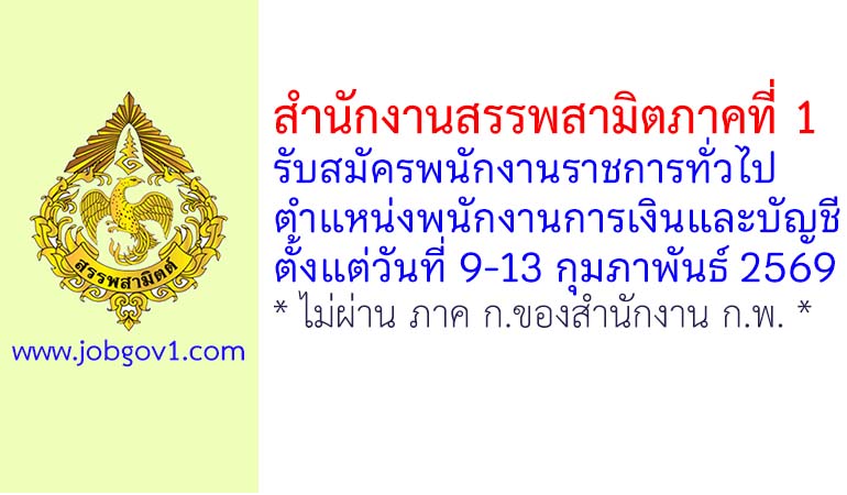 สำนักงานสรรพสามิตภาคที่ 1 รับสมัครพนักงานราชการทั่วไป ตำแหน่งพนักงานการเงินและบัญชี ตั้งแต่วันที่ 9-13 กุมภาพันธ์ 2569