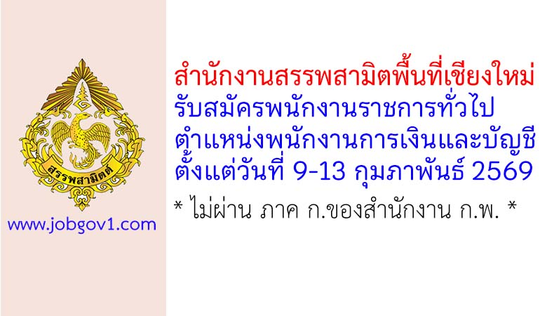 สำนักงานสรรพสามิตพื้นที่เชียงใหม่ รับสมัครพนักงานราชการทั่วไป ตำแหน่งพนักงานการเงินและบัญชี ตั้งแต่วันที่ 9-13 กุมภาพันธ์ 2569