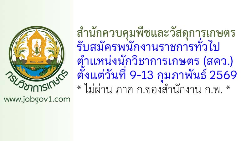 สำนักควบคุมพืชและวัสดุการเกษตร รับสมัครพนักงานราชการทั่วไป ตำแหน่งนักวิชาการเกษตร (สคว.) ตั้งแต่วันที่ 9-13 กุมภาพันธ์ 2569