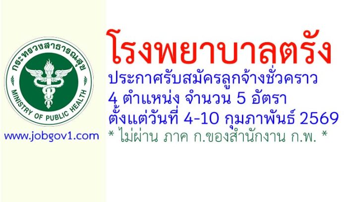 โรงพยาบาลตรัง รับสมัครลูกจ้างชั่วคราว 4 ตำแหน่ง 5 อัตรา ตั้งแต่วันที่ 4-10 กุมภาพันธ์ 2569