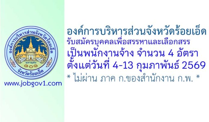 องค์การบริหารส่วนจังหวัดร้อยเอ็ด รับสมัครบุคคลเพื่อสรรหาและเลือกสรรเป็นพนักงานจ้าง 4 อัตรา ตั้งแต่วันที่ 4-13 กุมภาพันธ์ 2569