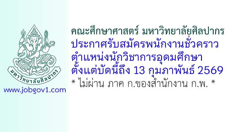 คณะศึกษาศาสตร์ มหาวิทยาลัยศิลปากร รับสมัครพนักงานชั่วคราว ตำแหน่งนักวิชาการอุดมศึกษา ตั้งแต่บัดนี้ถึง 13 กุมภาพันธ์ 2569