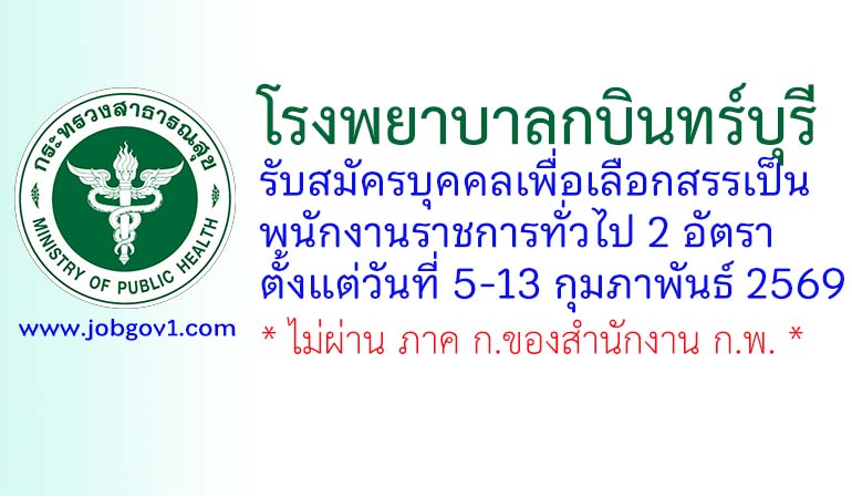 โรงพยาบาลกบินทร์บุรี รับสมัครบุคคลเพื่อเลือกสรรเป็นพนักงานราชการทั่วไป 2 อัตรา ตั้งแต่วันที่ 5-13 กุมภาพันธ์ 2569