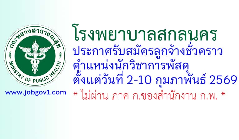 โรงพยาบาลสกลนคร รับสมัครลูกจ้างชั่วคราว ตำแหน่งนักวิชาการพัสดุ ตั้งแต่วันที่ 2-10 กุมภาพันธ์ 2569