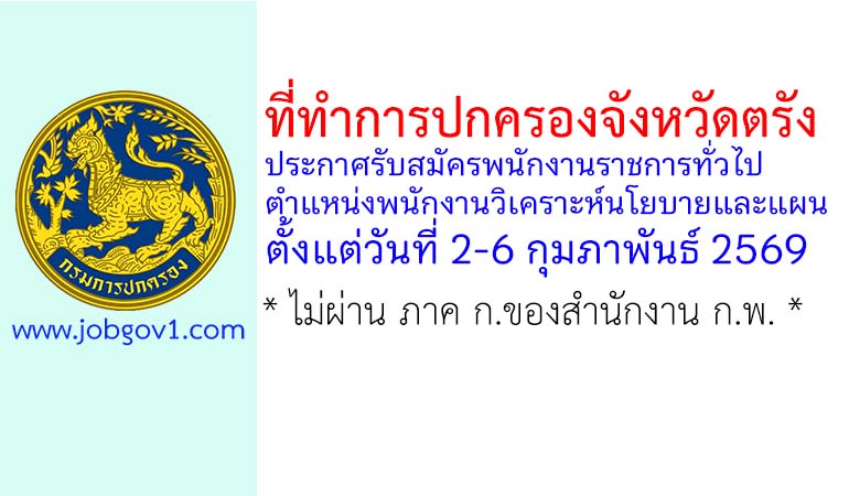 ที่ทำการปกครองจังหวัดตรัง รับสมัครพนักงานราชการทั่วไป ตำแหน่งพนักงานวิเคราะห์นโยบายและแผน ตั้งแต่วันที่ 2-6 กุมภาพันธ์ 2569