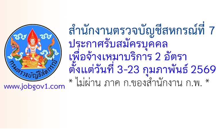 สำนักงานตรวจบัญชีสหกรณ์ที่ 7 รับสมัครบุคคลเพื่อจ้างเหมาบริการ 2 อัตรา ตั้งแต่วันที่ 3-23 กุมภาพันธ์ 2569