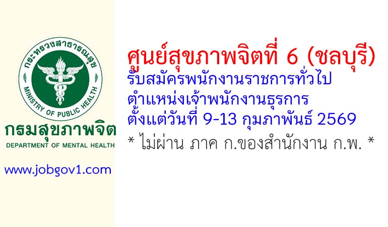 ศูนย์สุขภาพจิตที่ 6 (ชลบุรี) รับสมัครพนักงานราชการทั่วไป ตำแหน่งเจ้าพนักงานธุรการ ตั้งแต่วันที่ 9-13 กุมภาพันธ์ 2569