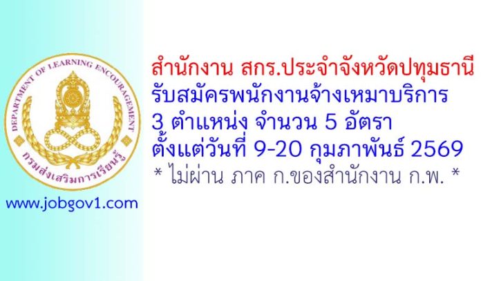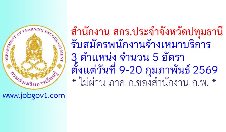 สำนักงาน สกร.ประจำจังหวัดปทุมธานี รับสมัครพนักงานจ้างเหมาบริการ 3 ตำแหน่ง 5 อัตรา ตั้งแต่วันที่ 9-20 กุมภาพันธ์ 2569