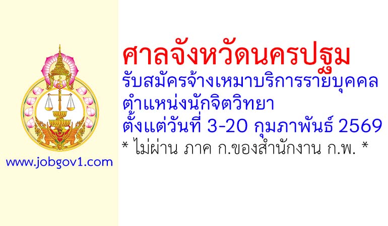 ศาลจังหวัดนครปฐม รับสมัครจ้างเหมาบริการรายบุคคล ตำแหน่งนักจิตวิทยา ตั้งแต่วันที่ 3-20 กุมภาพันธ์ 2569