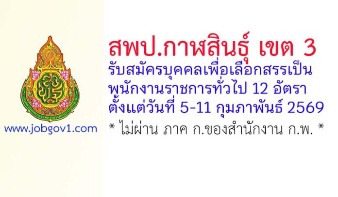 สพป.กาฬสินธุ์ เขต 3 รับสมัครบุคคลเพื่อเลือกสรรเป็นพนักงานราชการทั่วไป 12 อัตรา ตั้งแต่วันที่ 5-11 กุมภาพันธ์ 2569