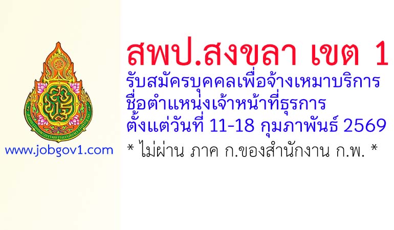 สพป.สงขลา เขต 1 รับสมัครบุคคลเพื่อจ้างเหมาบริการ ตำแหน่งเจ้าหน้าที่ธุรการ ตั้งแต่วันที่ 11-18 กุมภาพันธ์ 2569