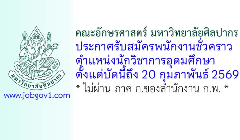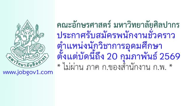คณะอักษรศาสตร์ มหาวิทยาลัยศิลปากร รับสมัครพนักงานชั่วคราว ตำแหน่งนักวิชาการอุดมศึกษา ตั้งแต่บัดนี้ถึง 20 กุมภาพันธ์ 2569