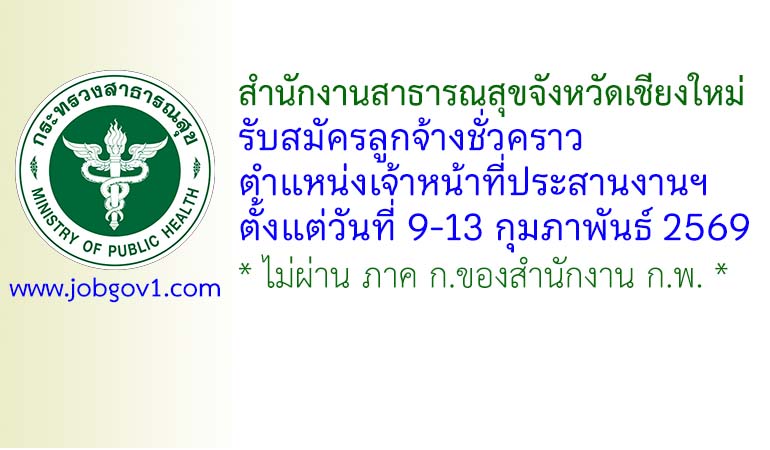 สำนักงานสาธารณสุขจังหวัดเชียงใหม่ รับสมัครลูกจ้างชั่วคราว ตำแหน่งเจ้าหน้าที่ประสานงานฯ ตั้งแต่วันที่ 9-13 กุมภาพันธ์ 2569