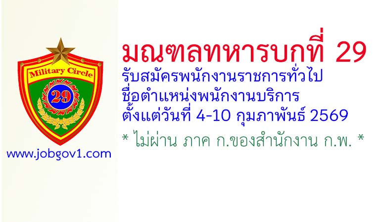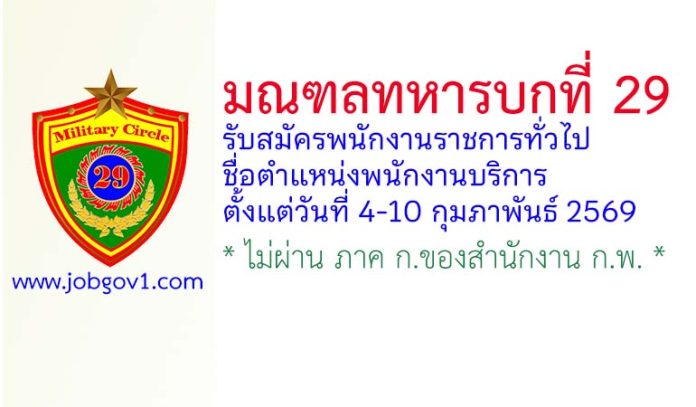 มณฑลทหารบกที่ 29 รับสมัครพนักงานราชการทั่วไป ตำแหน่งพนักงานบริการ ตั้งแต่วันที่ 4-10 กุมภาพันธ์ 2569