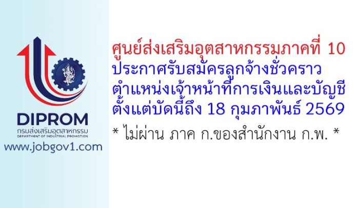 ศูนย์ส่งเสริมอุตสาหกรรมภาคที่ 10 รับสมัครลูกจ้างชั่วคราว ตำแหน่งเจ้าหน้าที่การเงินและบัญชี ตั้งแต่บัดนี้ถึง 18 กุมภาพันธ์ 2569