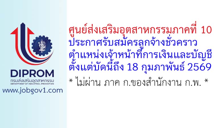 ศูนย์ส่งเสริมอุตสาหกรรมภาคที่ 10 รับสมัครลูกจ้างชั่วคราว ตำแหน่งเจ้าหน้าที่การเงินและบัญชี