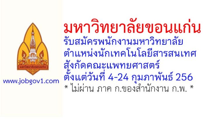 มหาวิทยาลัยขอนแก่น รับสมัครพนักงานมหาวิทยาลัย ตำแหน่งนักเทคโนโลยีสารสนเทศ สังกัดคณะแพทยศาสตร์