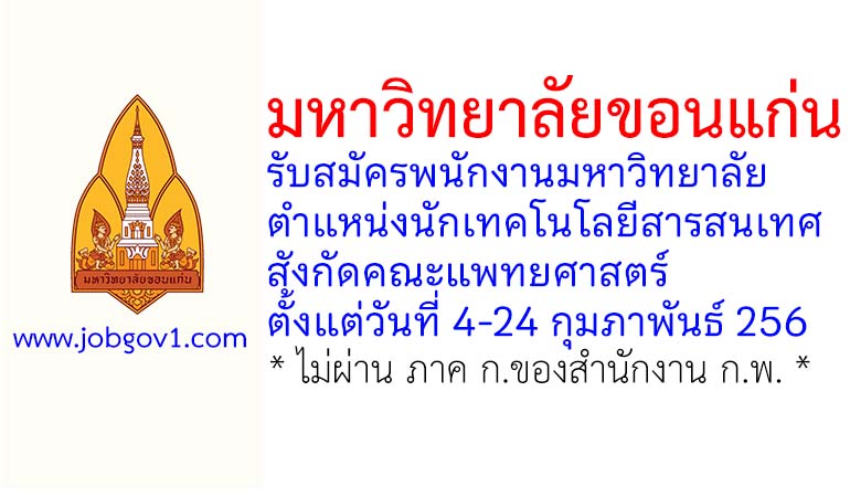 มหาวิทยาลัยขอนแก่น รับสมัครพนักงานมหาวิทยาลัย ตำแหน่งนักเทคโนโลยีสารสนเทศ สังกัดคณะแพทยศาสตร์ ตั้งแต่วันที่ 4-24 กุมภาพันธ์ 2569