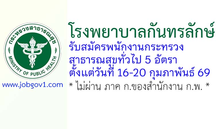 โรงพยาบาลกันทรลักษ์ รับสมัครพนักงานกระทรวงสาธารณสุขทั่วไป 5 อัตรา ตั้งแต่วันที่ 16-20 กุมภาพันธ์ 2569