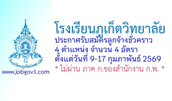 โรงเรียนภูเก็ตวิทยาลัย รับสมัครลูกจ้างชั่วคราว 4 อัตรา ตั้งแต่วันที่ 9-17 กุมภาพันธ์ 2569