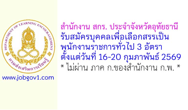 ประกาศสำนักงานส่งเสริมการเรียนรู้ประจำจังหวัดอุทัยธานี เรื่อง รับสมัครบุคคลเพื่อสรรหาและเลือกสรรเป็นพนักงานราชการทั่วไป