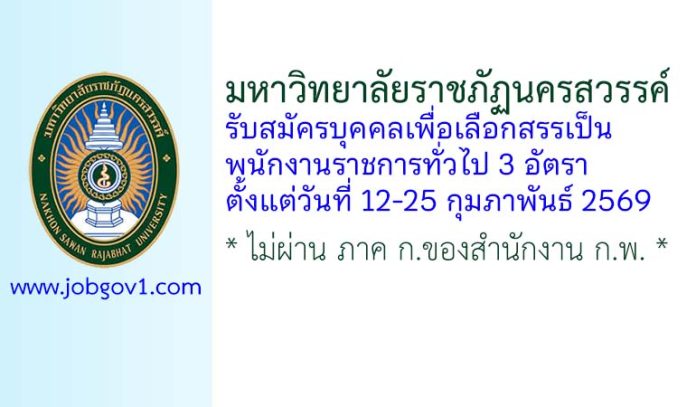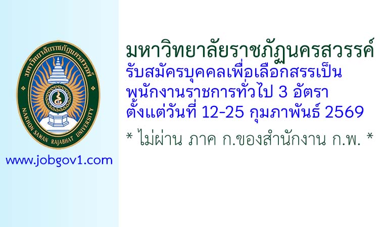 มหาวิทยาลัยราชภัฏนครสวรรค์ รับสมัครบุคคลเพื่อเลือกสรรเป็นพนักงานราชการทั่วไป 3 อัตรา ตั้งแต่วันที่ 12-25 กุมภาพันธ์ 2569
