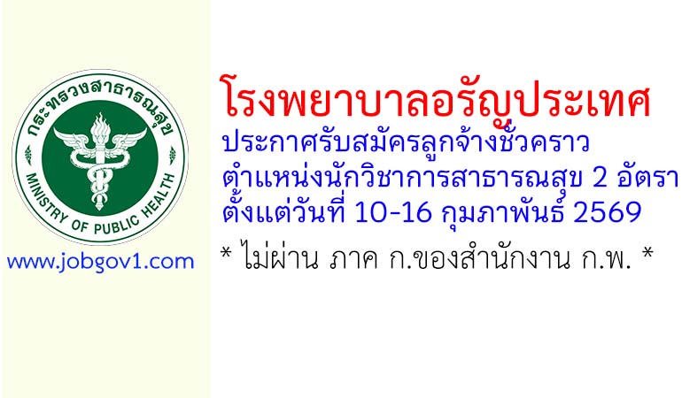 โรงพยาบาลอรัญประเทศ รับสมัครลูกจ้างชั่วคราว ตำแหน่งนักวิชาการสาธารณสุข 2 อัตรา ตั้งแต่วันที่ 10-16 กุมภาพันธ์ 2569