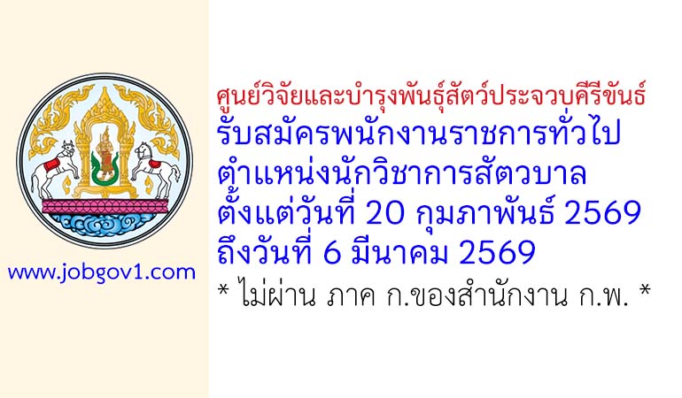 ศูนย์วิจัยและบำรุงพันธุ์สัตว์ประจวบคีรีขันธ์ รับสมัครพนักงานราชการทั่วไป ตำแหน่งนักวิชาการสัตวบาล ตั้งแต่วันที่ 20 กุมภาพันธ์ 2569 ถึงวันที่ 6 มีนาคม 2569
