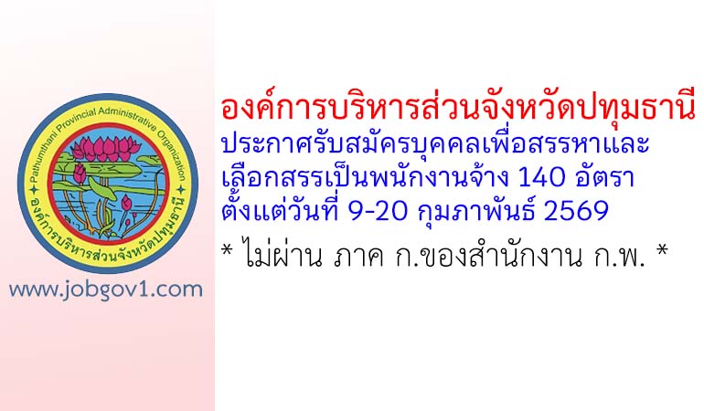 องค์การบริหารส่วนจังหวัดปทุมธานี รับสมัครบุคคลเพื่อสรรหาและเลือกสรรเป็นพนักงานจ้าง 140 อัตรา ตั้งแต่วันที่ 9-20 กุมภาพันธ์ 2569