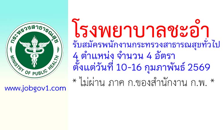 โรงพยาบาลชะอำ รับสมัครพนักงานกระทรวงสาธารณสุขทั่วไป 4 อัตรา ตั้งแต่วันที่ 10-16 กุมภาพันธ์ 2569