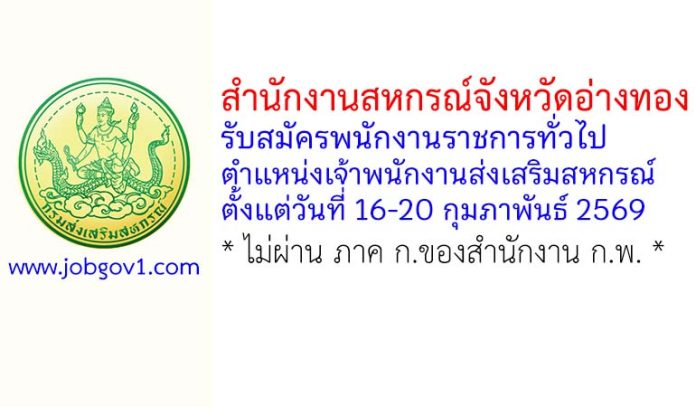 สำนักงานสหกรณ์จังหวัดอ่างทอง รับสมัครพนักงานราชการทั่วไป ตำแหน่งเจ้าพนักงานส่งเสริมสหกรณ์ ตั้งแต่วันที่ 16-20 กุมภาพันธ์ 2569
